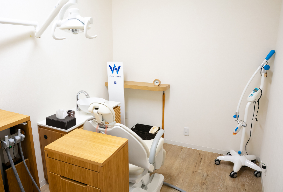 美容目的のホワイトニングは、プライバシーに配慮した個室で実施。落ち着いた空間で安心して施術を受けていただけます。